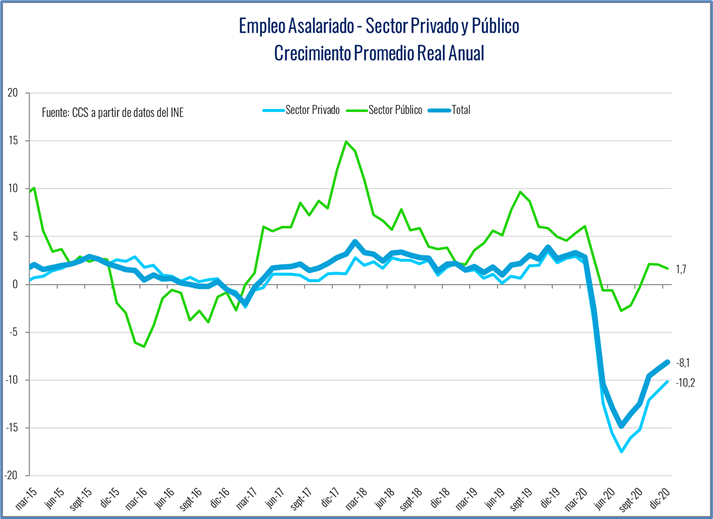 Estudio CCS: Masa Salarial se contrajo 7,2% en diciembre y 6,5% en 2020