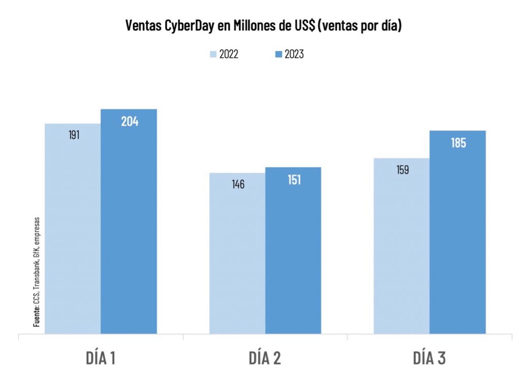 Luego de 3 días del principal evento de ofertas de nuestro país, la Cámara de Comercio de Santiago (CCS) informó que las ventas del CyberDay 2023 alcanzaron los US$ 540 millones, superando ampliamente el objetivo de US$ 400 millones trazado por la organización.