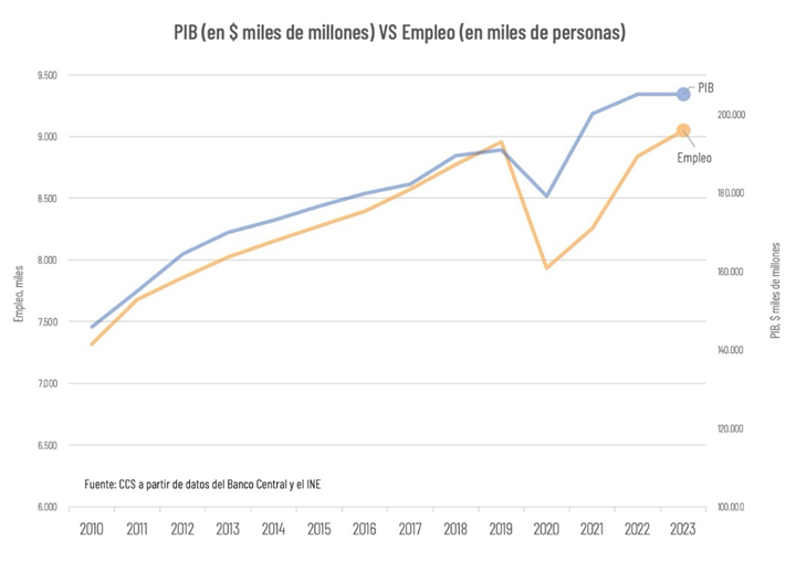 “Los negativos resultados se explican en parte por el ajuste experimentado por la economía a partir de mediados de 2022, sumado a procesos de cambio estructural que afectan al empleo desde el avance tecnológico, y, en forma crítica, al aumento de los costos del trabajo que han derivado de sucesivos cambios regulatorios en el mercado laboral, como la reducción de la jornada y el aumento del salario mínimo, entre otros”, subrayó George Lever, gerente de Estudios de la CCS.
