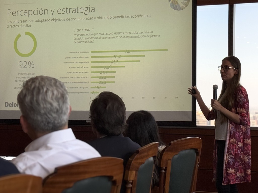 • Gabriel Acuña, Sustainability Leader en Deloitte, y Alejandra Bernal, senior manager en Deloitte, abordaron “El Valor Empresarial de la Sostenibilidad”, resaltando cómo las prácticas sostenibles están generando un retorno positivo y tangible para las empresas.