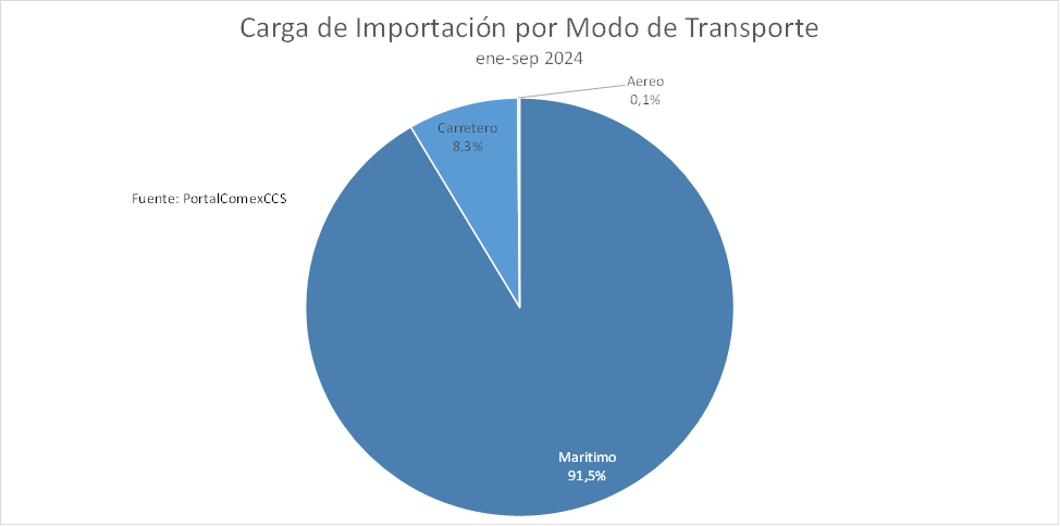 Al tercer trimestre de 2024 la carga de importación por vía marítima superó los 28 millones de toneladas.