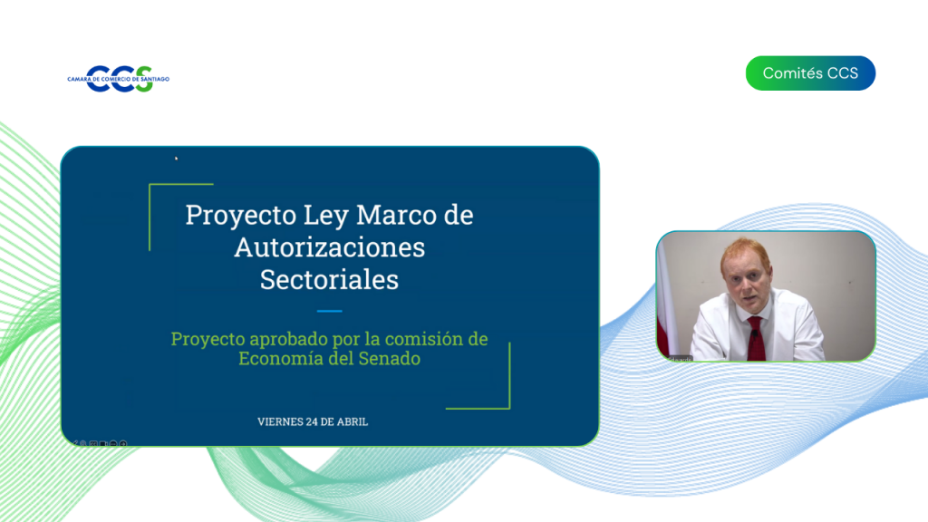 Durante su participación en el Comité de Asuntos Legislativos de la Cámara de Comercio de Santiago, el senador contextualizó la reforma en la crisis de productividad que afecta al país y expuso los principales cambios legislativos que buscan simplificar y agilizar la tramitación de permisos en Chile.