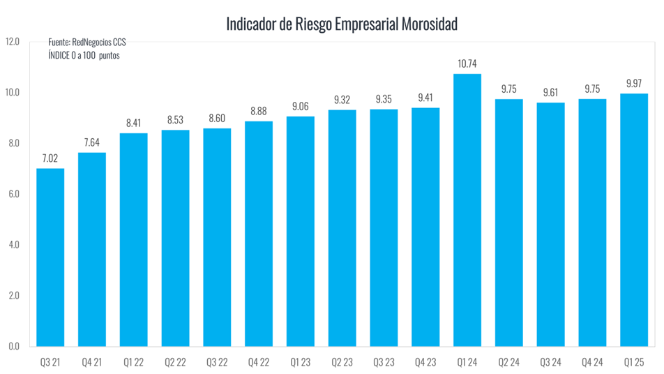 El Índice, que adopta valores entre 0 y 100 puntos, donde 100 representa el mayor nivel de riesgo, se elabora a partir de indicadores laborales (cumplimiento de obligaciones laborales y prácticas sindicales), y financieros (cumplimiento comercial y protestos). La metodología es aplicada mensualmente a una muestra con más de 7 mil, las cuales forman parte del registro de proveedores de RedNegocios de la CCS.