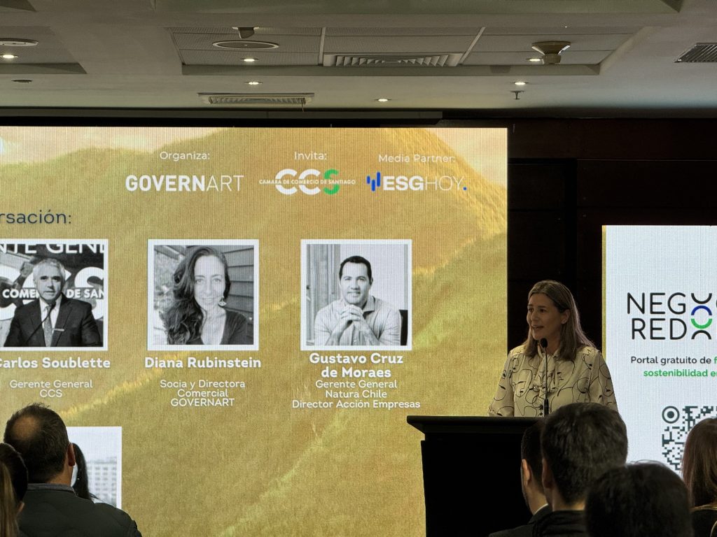 Posteriormente se desarrolló un panel de conversación moderado por Catalina Allendes, fundadora de ESG Hoy, en el que participaron Luis Alberto Letelier, presidente de ACAFI; Gustavo Cruz de Moraes, gerente general de Natura Chile; Diana Rubinstein, socia y directora comercial de GovernArt; y Carlos Soublette, gerente general de la CCS.