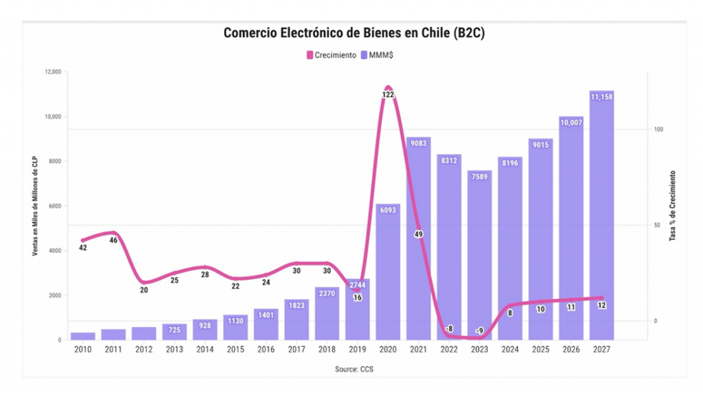 Estas cifras, adicionalmente, más que triplican los valores observados a fines de la década pasada, consolidando las nuevas dimensiones del comercio electrónico chileno.