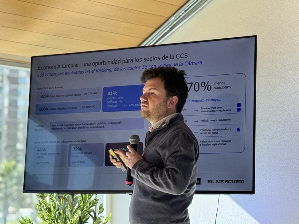 La jornada continuó con la exposición de Guillermo González Caballero, Socio de Raigal Consultores y ex Jefe de la Oficina de Economía Circular del Ministerio del Medio Ambiente, quien abordó el tema “Economía Circular: de los Principios a la Acción”, destacando el marco normativo nacional y las oportunidades para que las empresas avancen en este desafío.