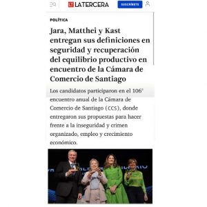 Jara, Matthei y Kast entregan sus definiciones en seguridad y recuperación del equilibrio productivo en encuentro de la Cámara de Comercio de Santiago (25/07/2025)