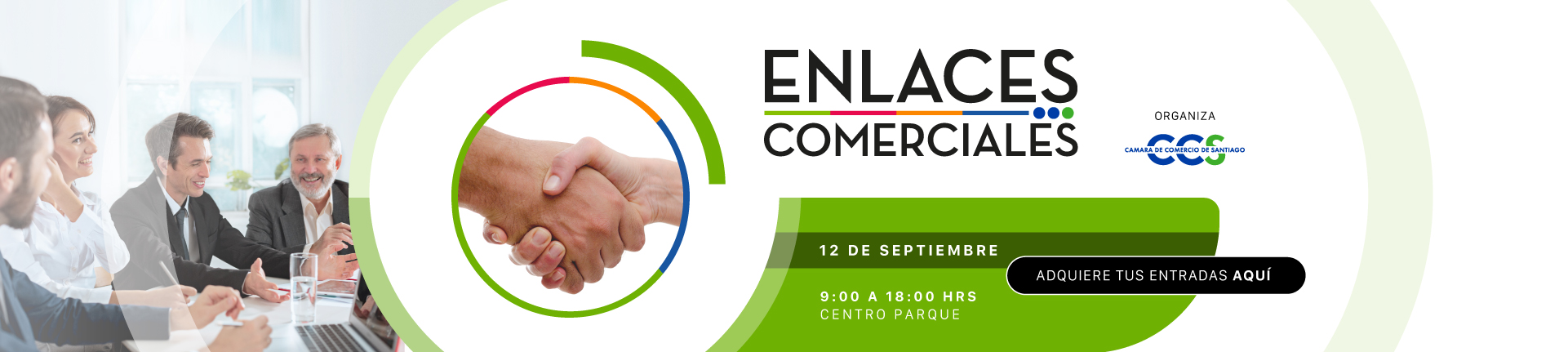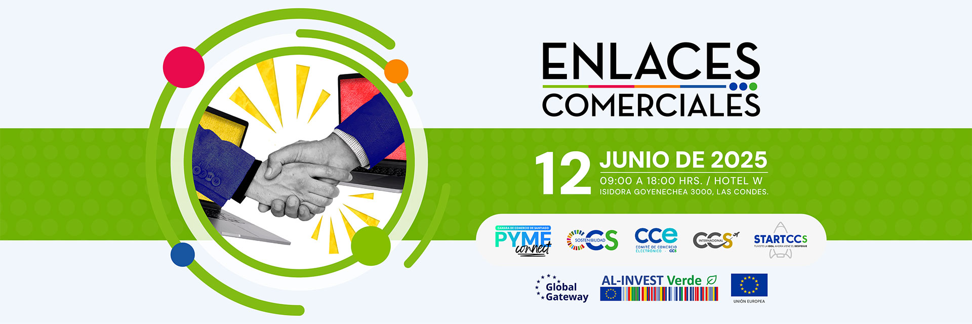 Participa de esta nueva versión de ENLACES COMERCIALES 2025, rueda de negocios organizada por la Cámara de Comercio de Santiago y sus distintas áreas, cuyo objetivo es incentivar el desarrollo comercial y generar oportunidades de negocios entre empresas y potenciales proveedores.